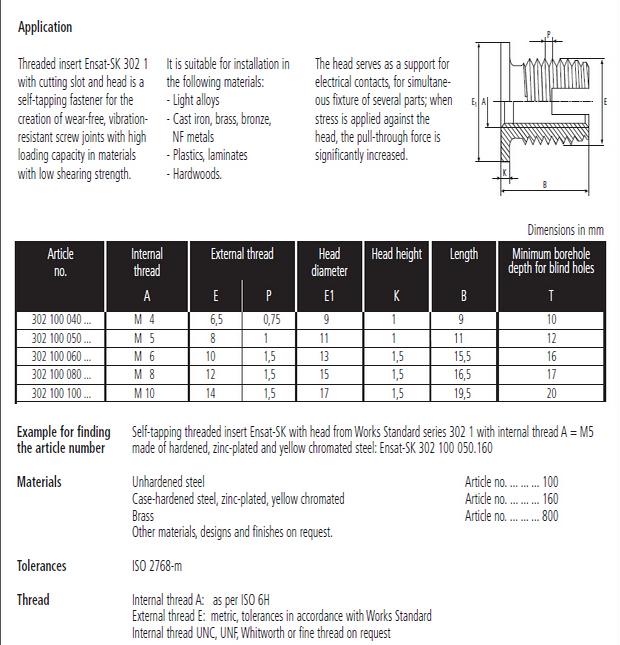 302-1型自攻株洲丝套是一种新型的紧固件,使用后能够加强螺纹强度。产品有内外牙,将其嵌入塑料,铝合金,铸铁,铜等较软材料内,形成的内螺纹孔就可以具有较高的强度。